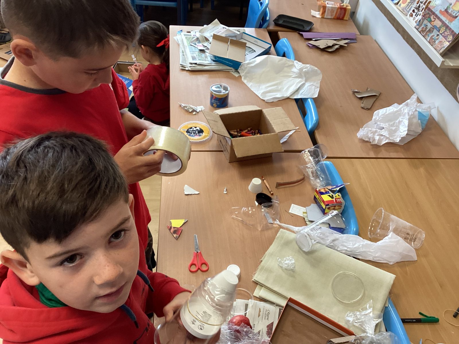 One activity was junk modelling where the book “Not a Box” was used as inspiration. The children then created their own amazing creations.