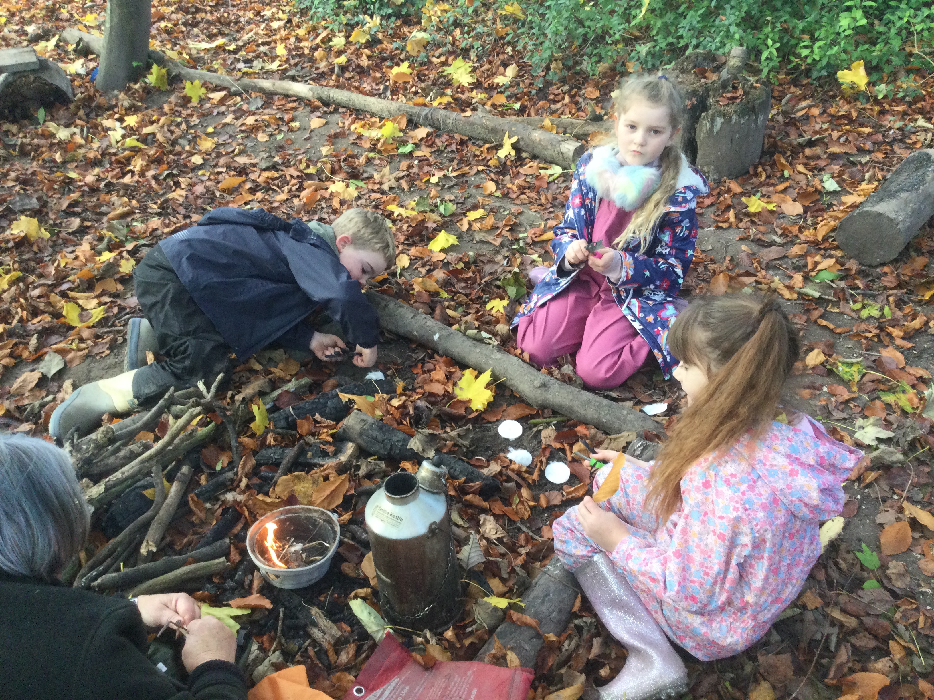 Another glorious afternoon in the woods, where the children were surrounded by the autumn leaves and sunshine.