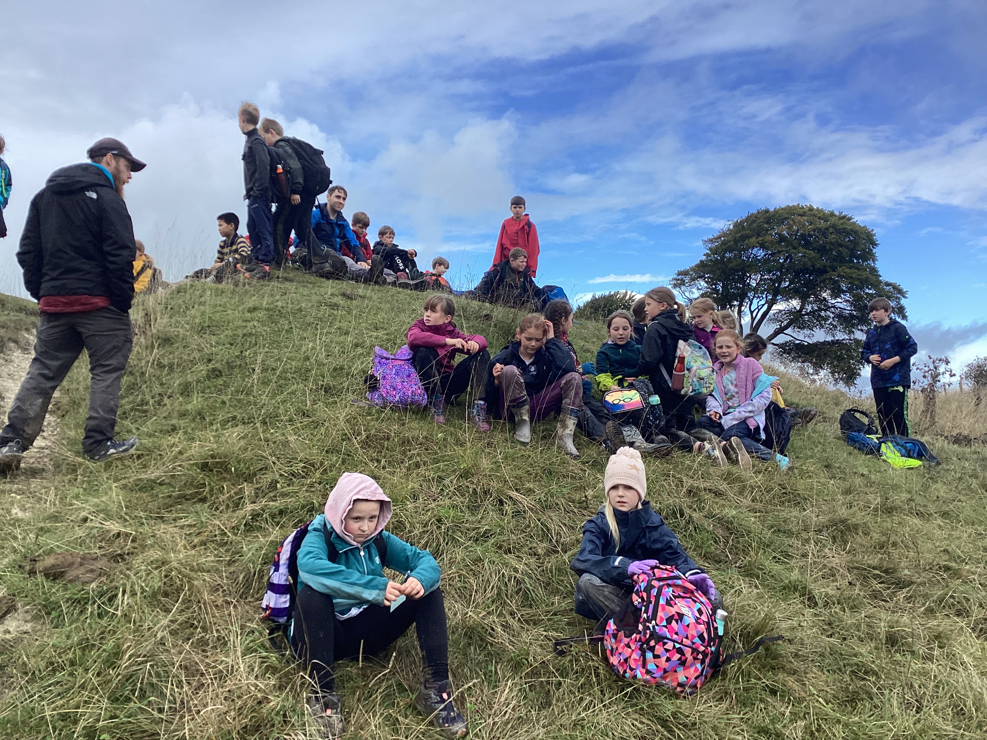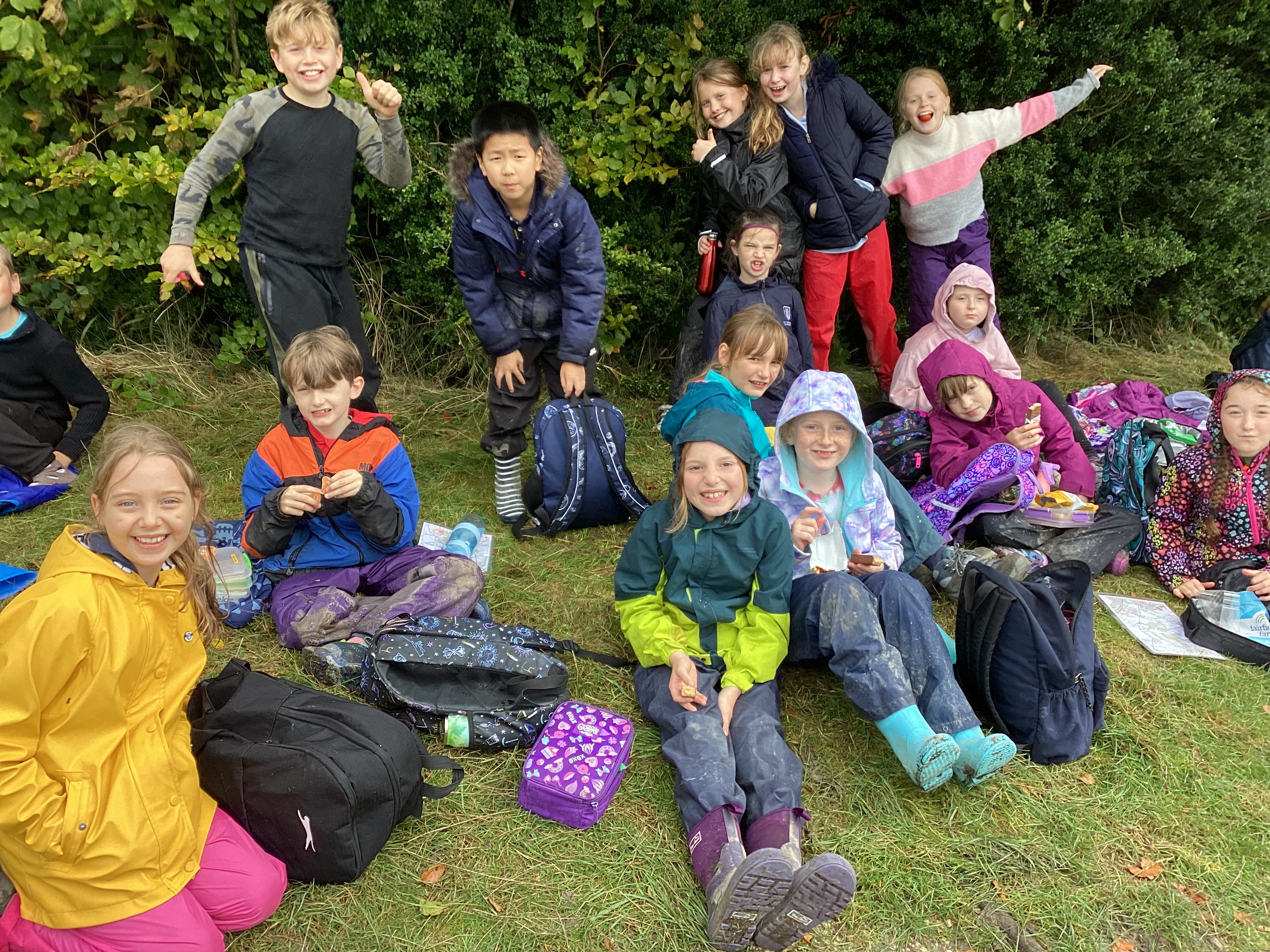 Today, we set out on a walk to the nearby Oliver’s Castle, the local highpoint with stunning views of the Wiltshire Countryside. Before setting off, we learnt to use an OS map and a compass, which we used to make our way through the streets of Devizes and out into open country. Thankfully, the inspectors were there to help us use these tools otherwise, it is possible that we would still be somewhere in the nearby countryside… Our route was somewhat hampered today by the weather and we had to tackle many a deep puddle and some seriously sludgy conditions – quite a few shoes, wellies and walking boots got stuck in the mud and many a rescue mission had to be carried out to return feet to footwear as we climbed the hill.