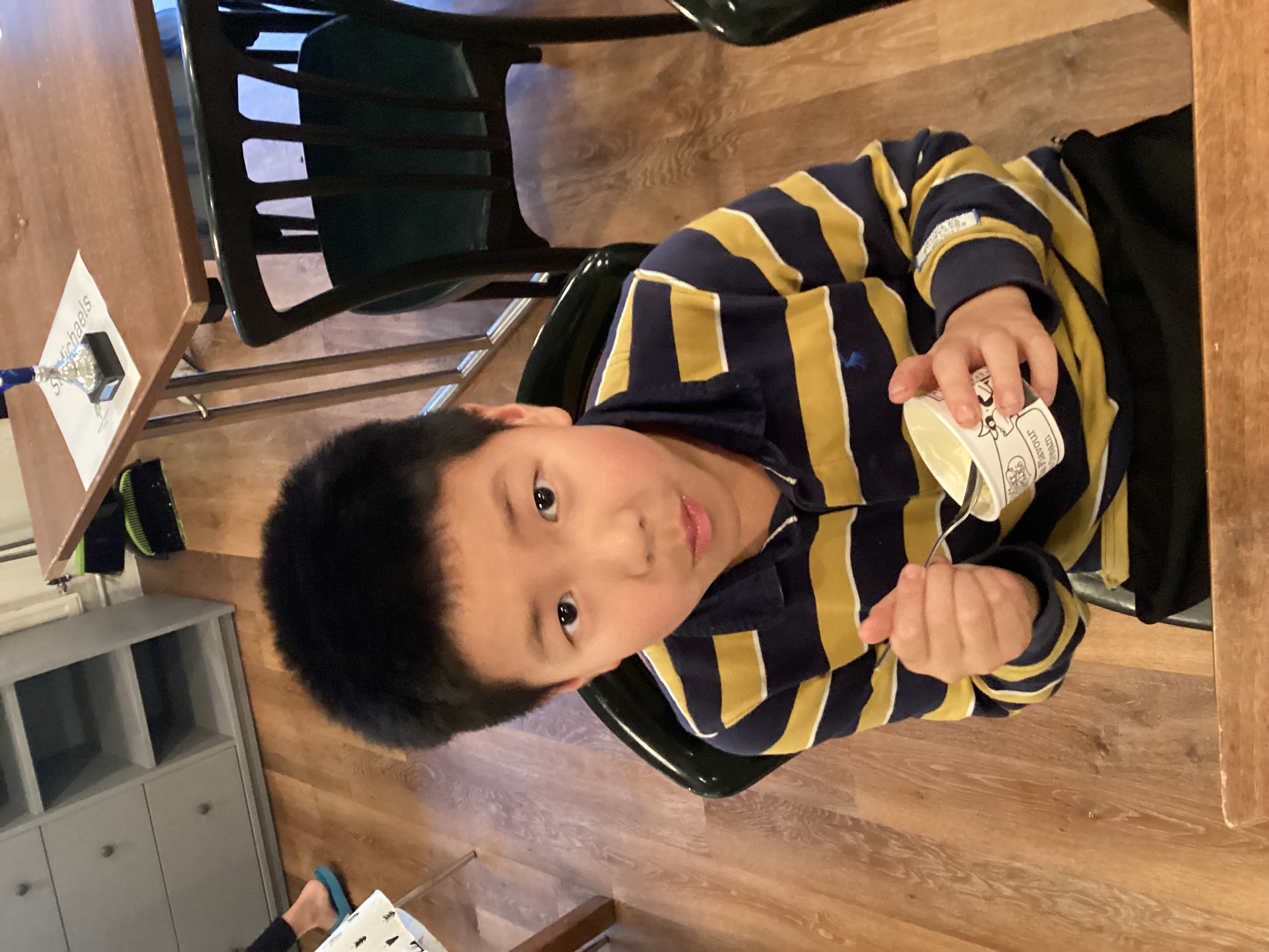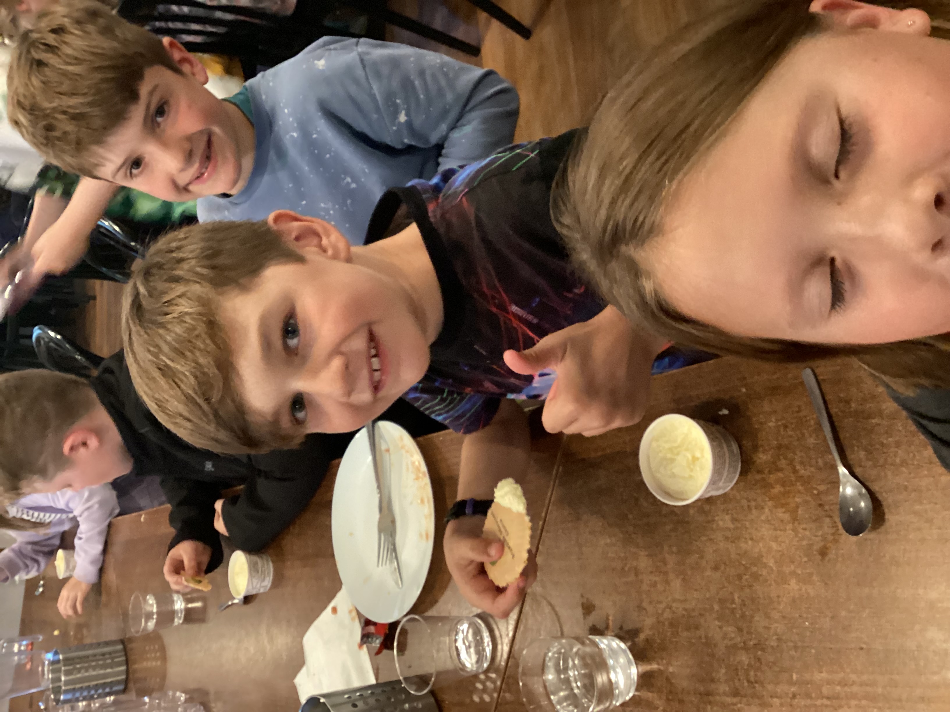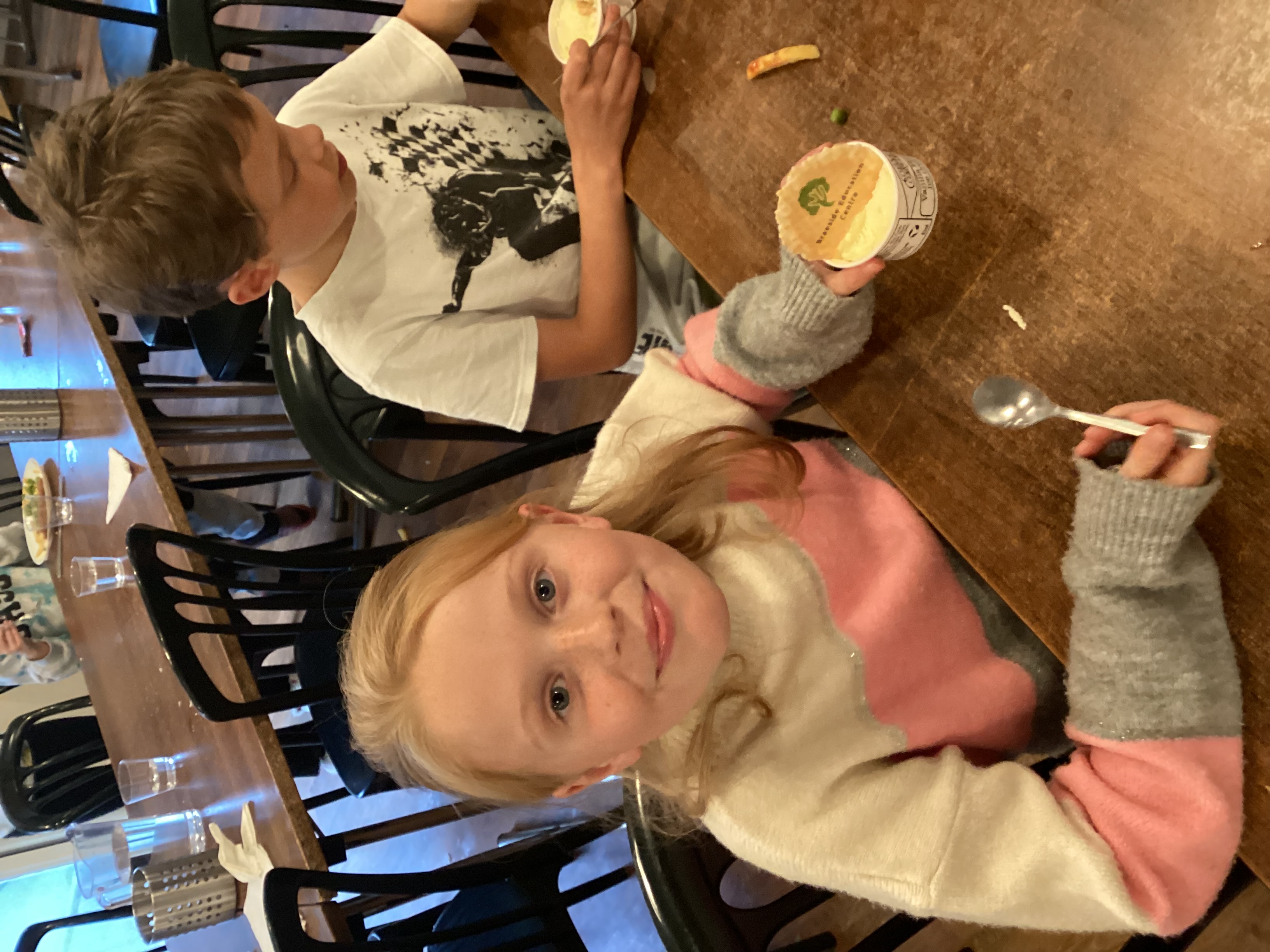 Dinner this evening was delicious. Fish and chips followed by ice cream!