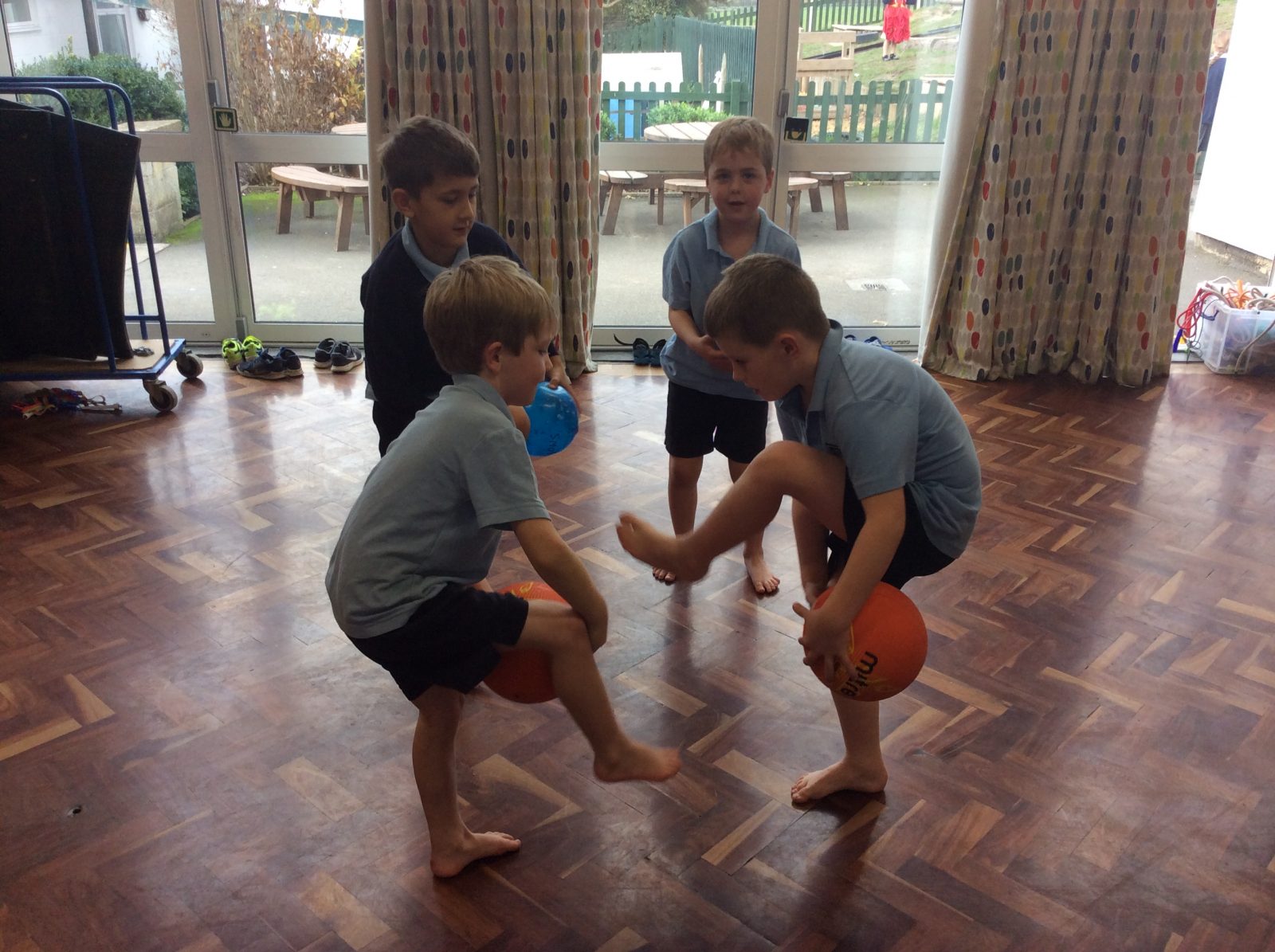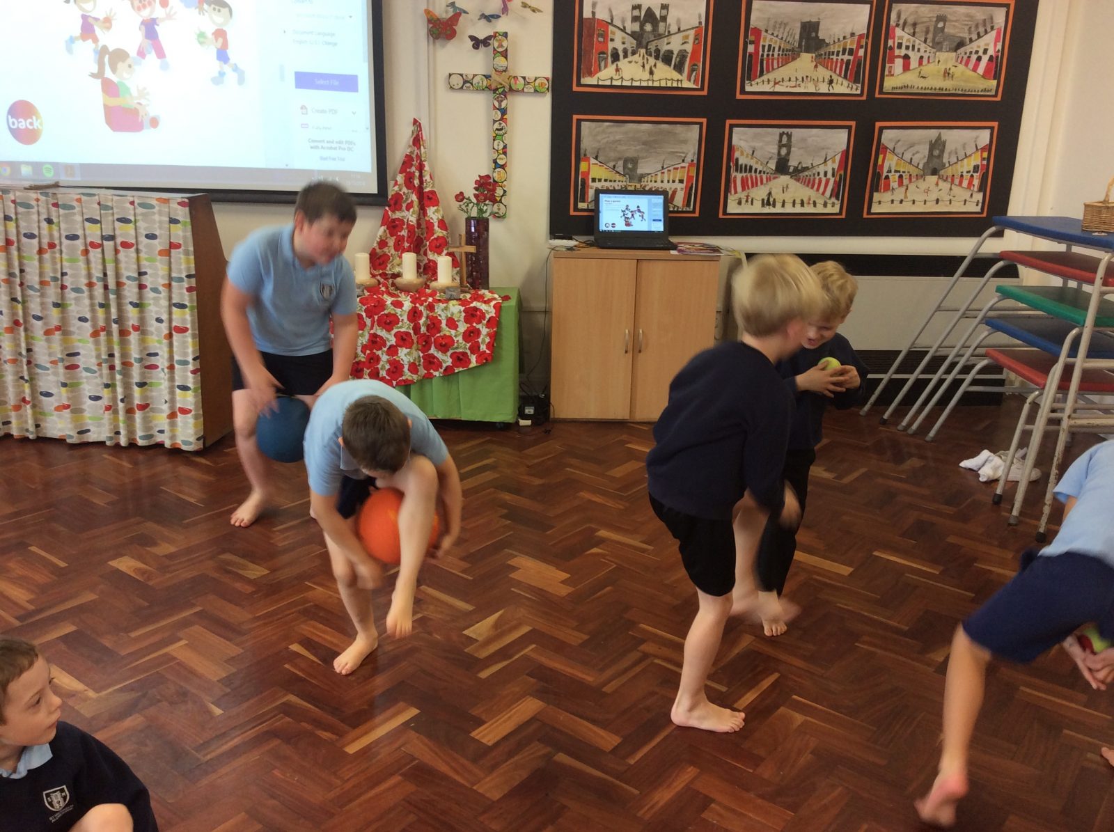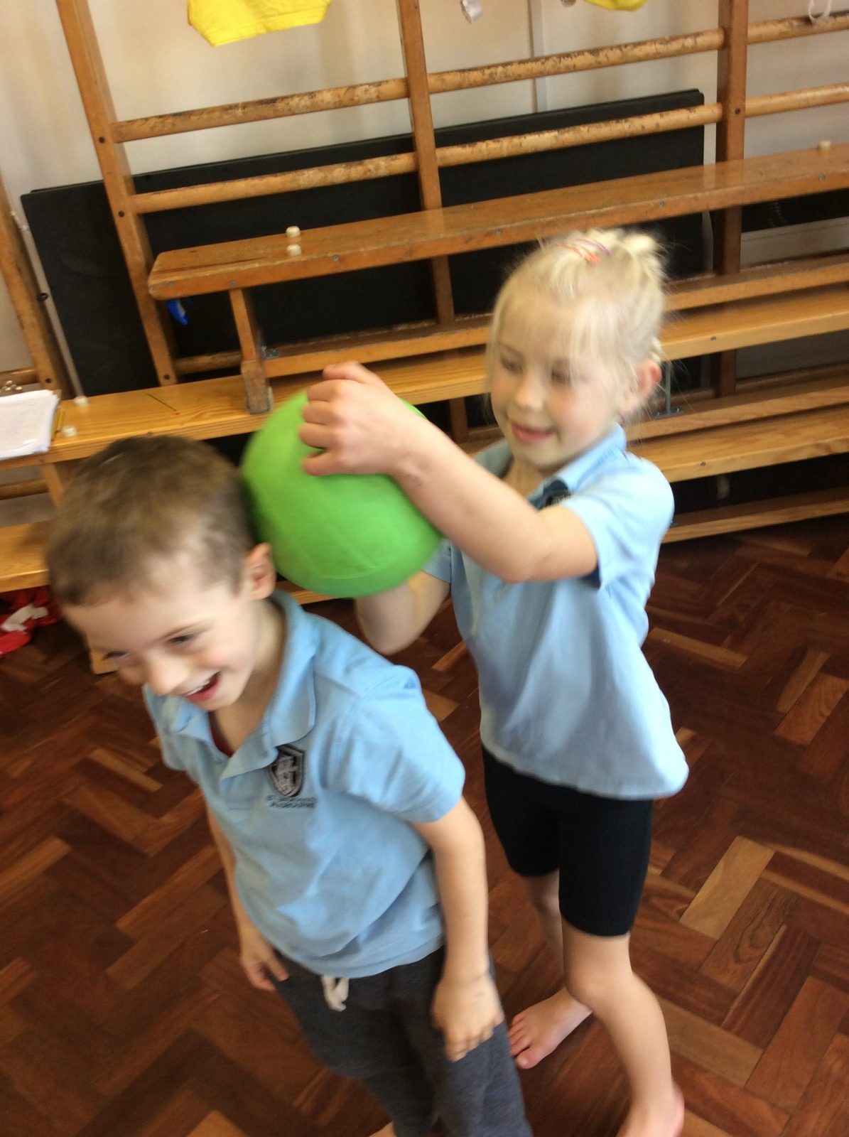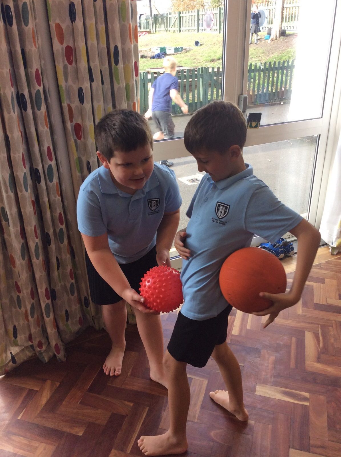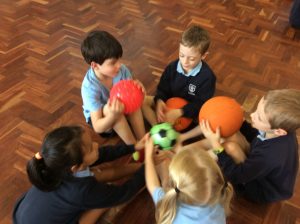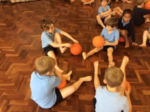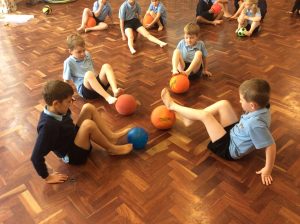 In PE, year two have become clowns, as they have been practising their ball skills!
