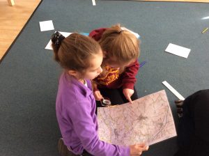 Well, this is what Cherry and Elder investigated today. They started their day learning all about maps. They explored using a compass, reading grid references and explored symbols.