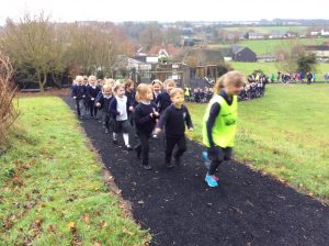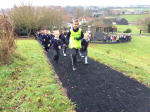 Wednesday saw St Michael’s finally able to open our new healthy hearts and minds track, and whilst the snow in the morning prevented us from opening it at nine o’clock, a little bit of rain in the afternoon wasn’t going to stop us.